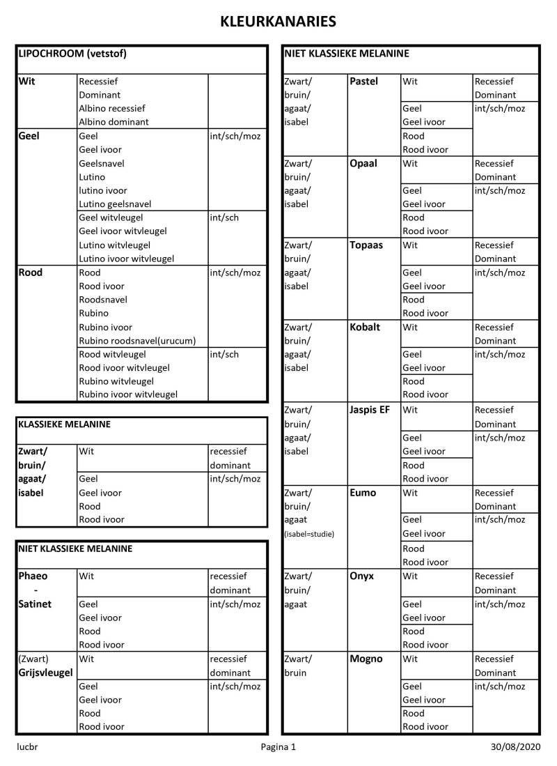 Hoe geef ik nu de juiste benaming (kleurslag) aan mijn kleurkanarie? In deze volgorde: